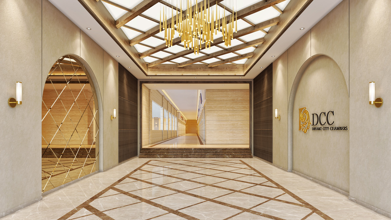 DCC Commercial is a mixed-use commercial complex in Mumbai encompassing retail shops, office spaces, a conference facility, and hospitality venues including a bar, lounge, and coffee house. Our team produced a full visualization package covering the building’s exterior from multiple camera positions, alongside detailed interior renders of all key public and commercial areas.