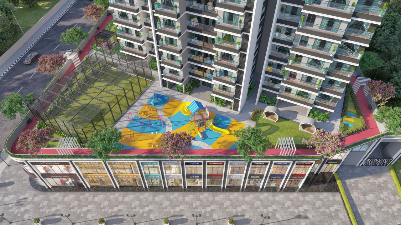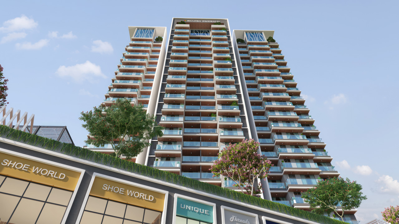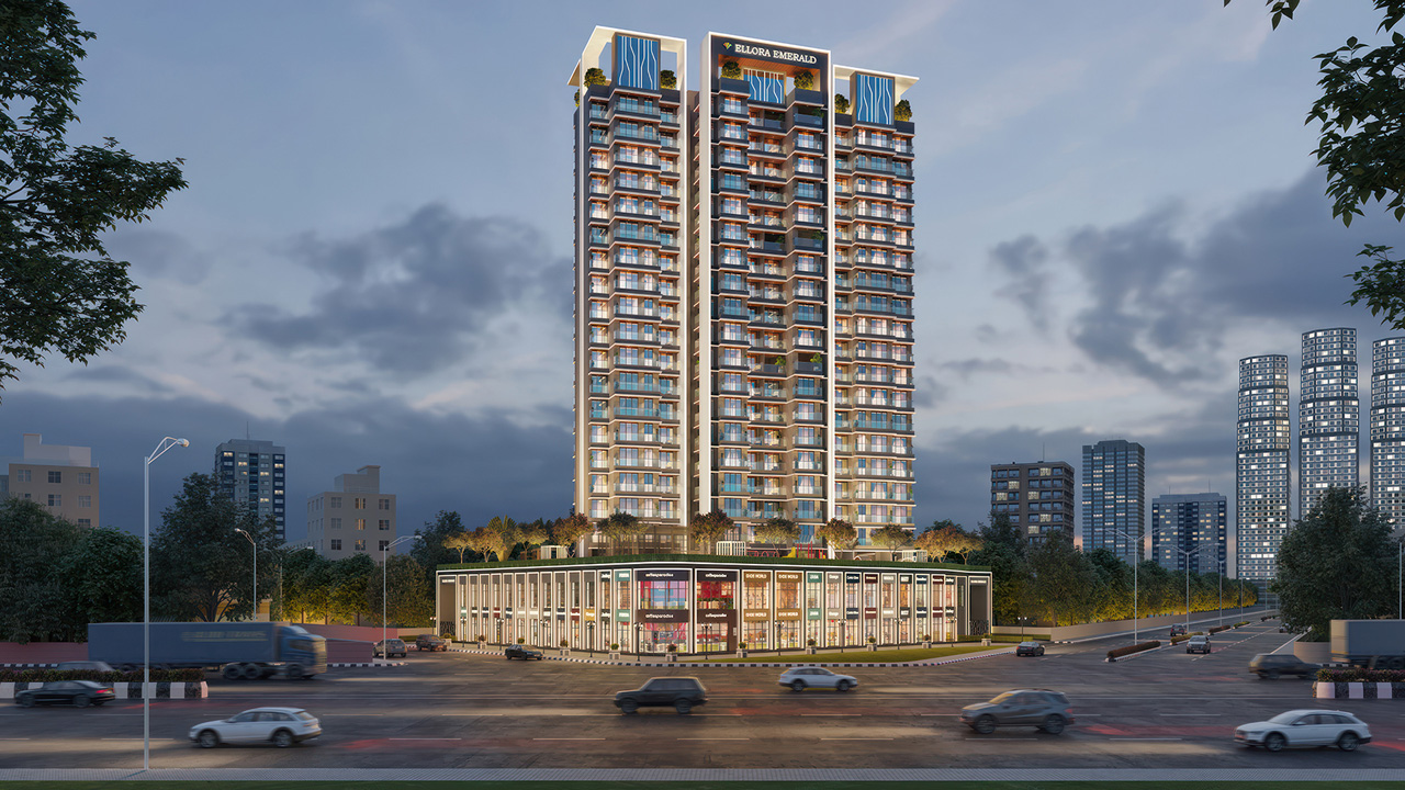 Luxury residential high-rise with commercial podium in Mumbai. A comprehensive visualization package covering exteriors, interiors, and a full walkthrough animation.